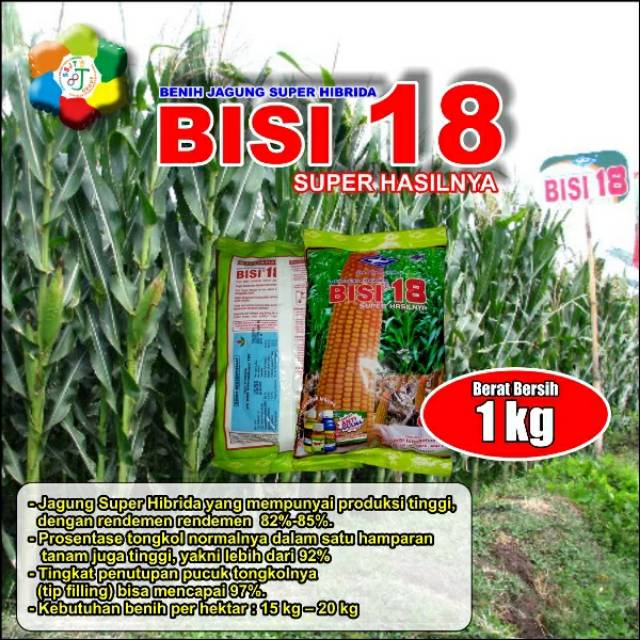 Produk utama benih bisi dengan nilai penjualan tertinggi adalah benih jagung hibrida. Benih jagung bisi 18 isi kemasan 1 kg cap kapal terbang. Kurang lebih sekitar 25 kg benih jagung bisi 18 perhektar dengan jarak tanam antara 60x20 menghasilkan kira kira 13 ton perhektar. Jual beli online aman dan nyaman hanya di tokopedia.